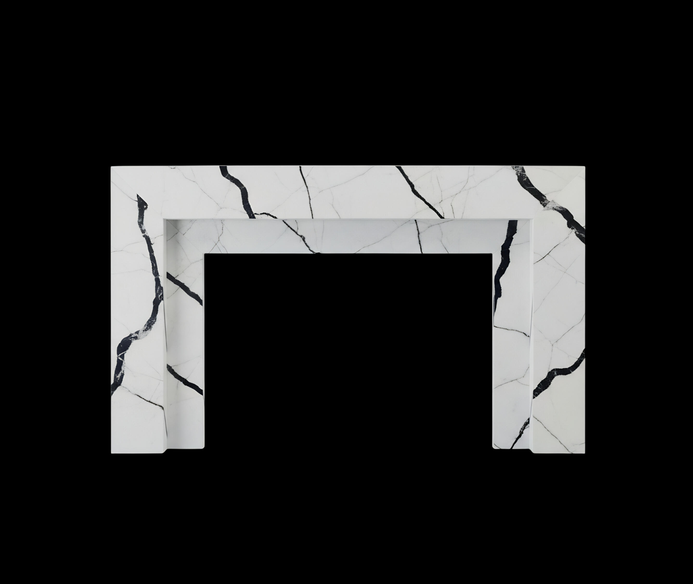 A substantial, thick-profile surround with strong mitered edges and a sculptural, monolithic presence. The Sterling is designed to anchor large-scale rooms and commercial interiors.